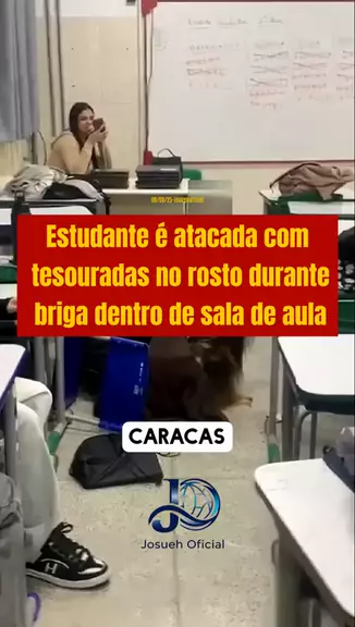 Estudante é atacada com tesouradas no rosto por colega dentro da sala de aula em São Paulo.Imagens da confusão mostram as duas jovens discutindo por causa de uma cadeira antes da briga física começar. A vítima foi encontrada coberta de sangue no banheiro da escola, tentando estancar os ferimentos, quando policiais militares chegaram ao local. #viraliza #maisviews #Notícia #Rondônia