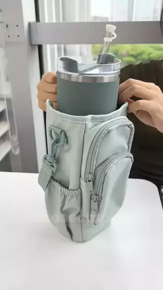 Bolsa para garrafa e copo de água com alça e bolsos #garrafa #termica #copo #água