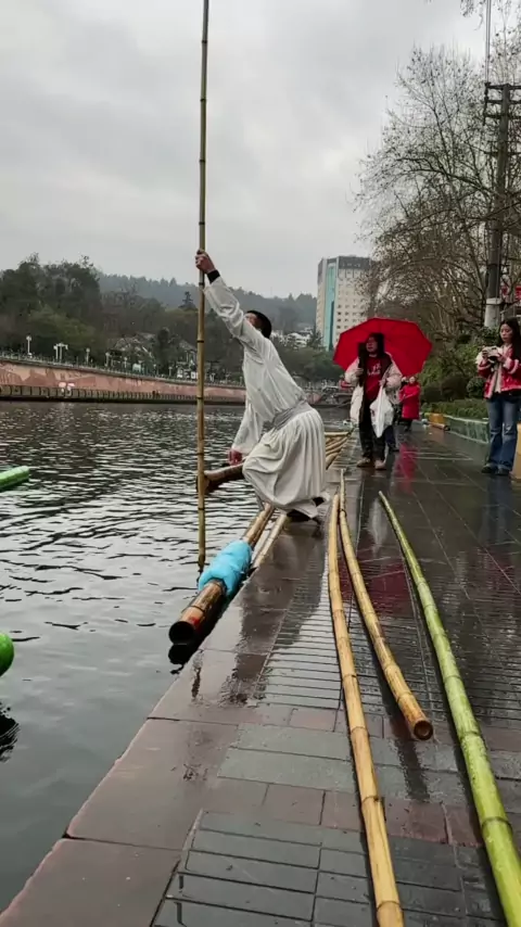 Kung fu sozinho bambu flutuar para celebrar o Ano Novo! Tudo de bom no Ano Novo! # du Zhu Piao Yang Lanjun
