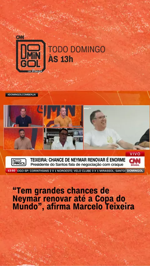 VAI ESTENDER O CONTRATO? đâď¸ No #DomingolcomBenja, o presidente do Santos, Marcelo Teixeira, disse acreditar em uma possĂvel extensĂŁo de contrato de Neymar com o clube da Vila Belmiro. Inicialmente, o vĂnculo do craque brasileiro com o Peixe ĂŠ vĂĄlido por seis meses. #CNNEsportes #Santos #Neymar #Exclusivo