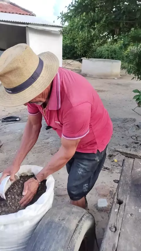 plantando coentro no bloco de tijolo