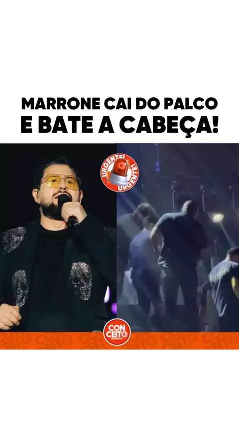SUSTO NA MADRUGADA! O cantor Marrone caiu do palco no fim de show nesta madrugada em Goiânia. Ele machucou a cabeça e precisou de atendimento médico, mas está bem. No momento da queda, a apresentação foi interrompida e houve uma grande mobilização da equipe para prestar os primeiros socorros. #conceitosertanejo #sertanejo