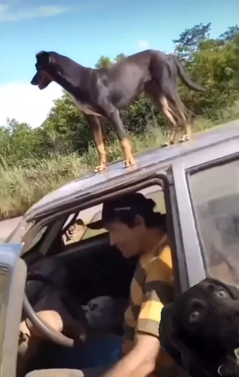 Cleytin dando um rolê de super carro #caramelo #dog #cachorro #uno #escadinha
