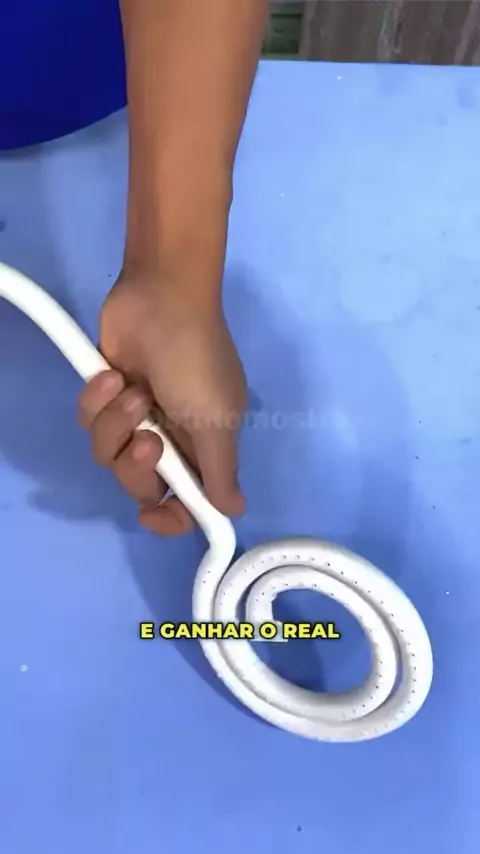 Aqui nessa invenção, você vai adicionar areia dentro de um cano até o topo. Essa areia serve para moldar o cano sem ter perigo de quebrar. Depois de esquentar, molda ele em espiral. Tira a areia de dentro do cano e amassa a ponta. Taca super cola para vedar. Agora use uma broca fina igual essa, só que diferente para fazer os furos. Agora meta a mangueira no buraco do seu cano e faça essa curva. Gambiarra finalizada agora é só fabricar e ganhar o real. Ficou melhor que o original, sem dúvidas. Es