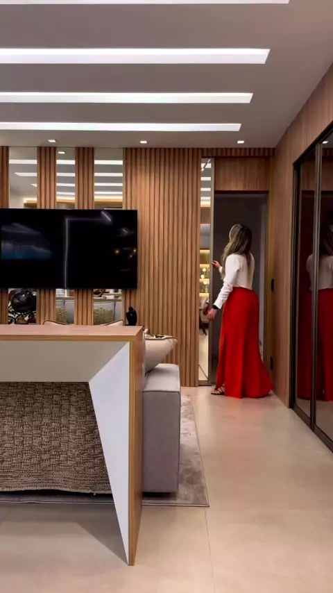 #Repost @nadyadelgado.arquitetura Porta de correr piso teto com recortes em espelho bisotado embutida no painel do Home!!!