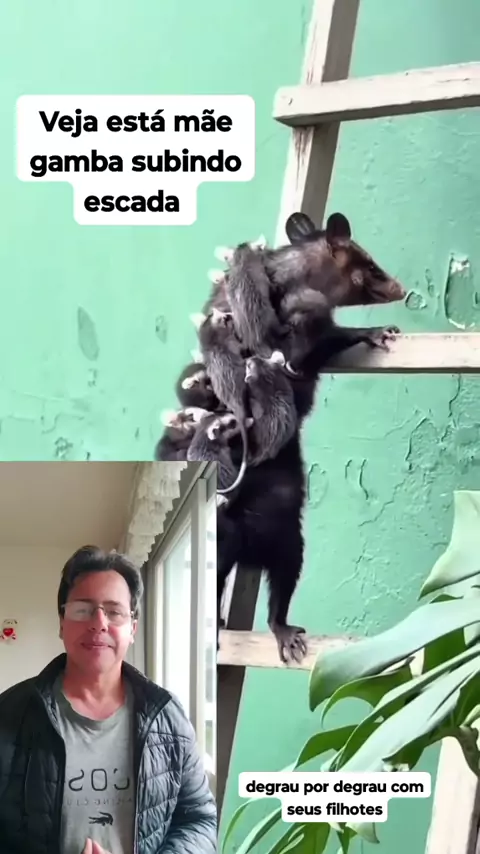Mãe gamba levando seu filho nas costas. #animal #maisviews #gamba
