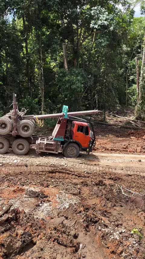 proses pengeluaran kayu dari dalam block#bulldozer#heavyequipment#loggingtruck