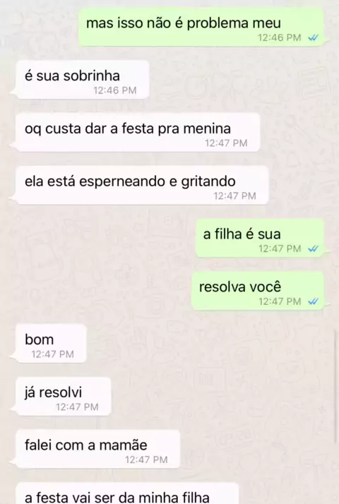 Parte 1 #whatsapp #conversasdewhats #conversa #irmã #festainfantil #festa #filha #mimada More