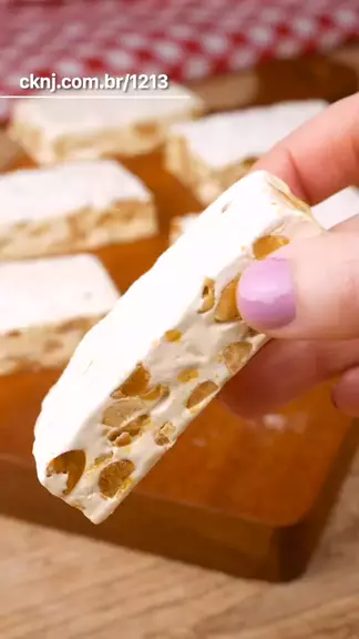 Como fazer Torrone Pessoal esse vídeo está em formato reduzido (reels), caso queira conferir o vídeo completo com todas as dicas, rendimento e mais detalhes acesse: http://cknj.com.br/1213 #receitasimples  #torrone #doce #amendoim INGREDIENTES 360 g de Açúcar (2 xícaras) 120 mL de Água (1/2 xícara) 225 g de Mel (3/4 de xícara) 2 unidades de Clara de ovo 350 g de Amendoim torrado sem sal (2 xícaras e 1/2) Para polvilhar Amido de milho
