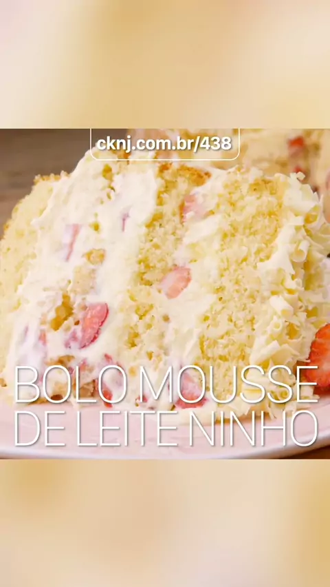 Bolo Mousse de Leite Ninho com Morangos #cknj #bolomousse #leiteninho #morango #receitaboa