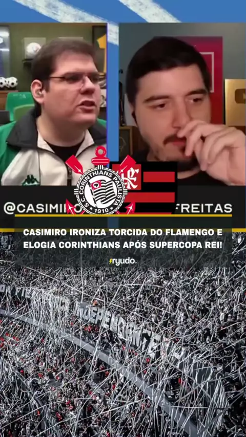 🚨 CAZÉ NÃO PERDOOU!\n\nDurante a transmissão da Supercopa Rei, Casimiro brincou com a diferença de apoio nas arquibancadas:\n“Só a torcida do Corinthians foi, é uma final de torcida única. Se eu sou a diretoria do Flamengo eu peço pra esse jogo ser anulado.” 😂💬\n\n👉 O streamer exaltou a Fiel, que fez uma verdadeira festa em Brasília! 🏁🔥\n\n\n\n.\n\n.\n\n.\n\n.\n\n.\n\n.\n#RyudoTV #Casimiro #Corinthians #Flamengo #SupercopaRei