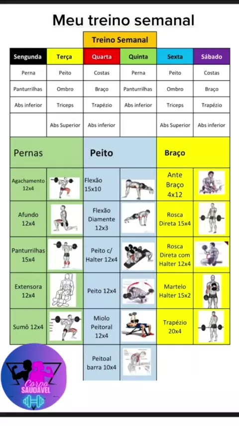 Tabela treino semanal #emagrecimentosaudável #dicasfitness #Saúde