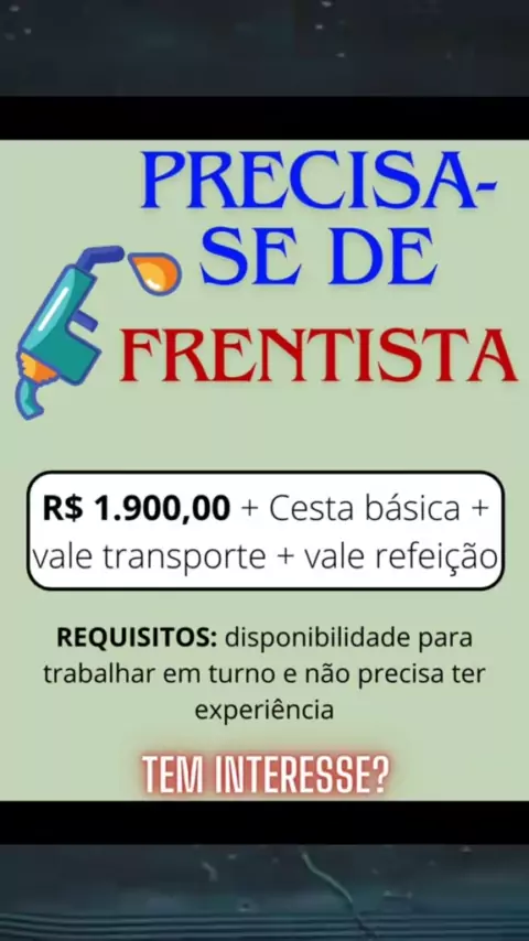 CONTRATA-SE FRENTISTA.#vagas#trabalho#emprego#frentista#brasil#sudeste#nordeste#sp#RJ#BH#PB#RS#PR#MT#MS#BA