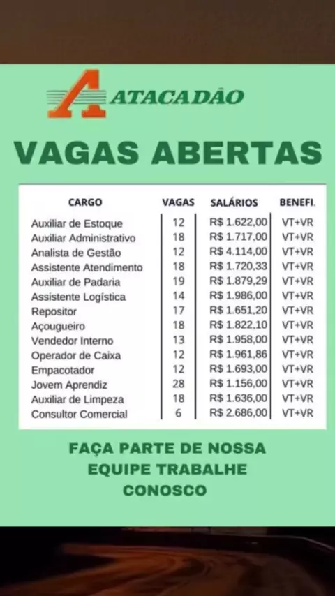 ATACADÃO ABRE VAGAS DE EMPREGO. #vagas #atacadão #supermercadoatacadao #supermercado #empregos #SP #RS #BA #MT #PB #MA #PR #BA #nordeste #sudeste