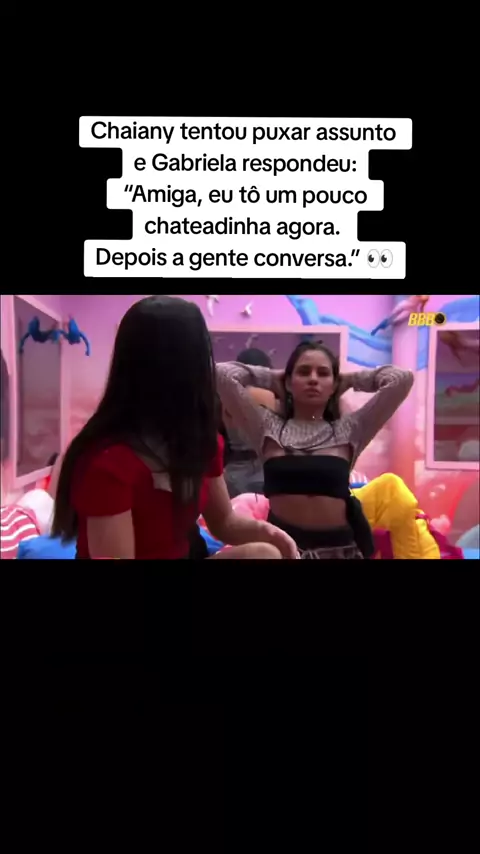 Chaiany tentou puxar assunto e Gabriela respondeu: “Amiga, eu tô um pouco chateadinha agora. Depois a gente conversa.” #BigBrotherBrasil #RedeBBB #BBB26 #viral #Bbbaovivo