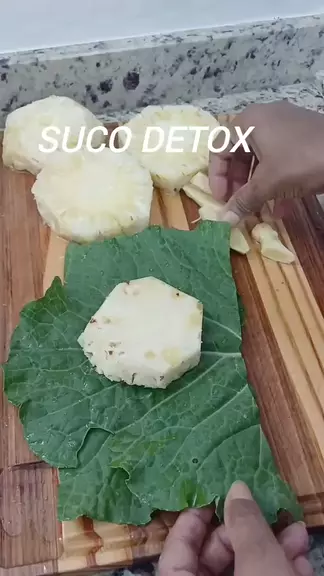Suco detox para desinchar. ..Folha de couve ..abacaxi .. Gengibre .. sumo de um limão #food