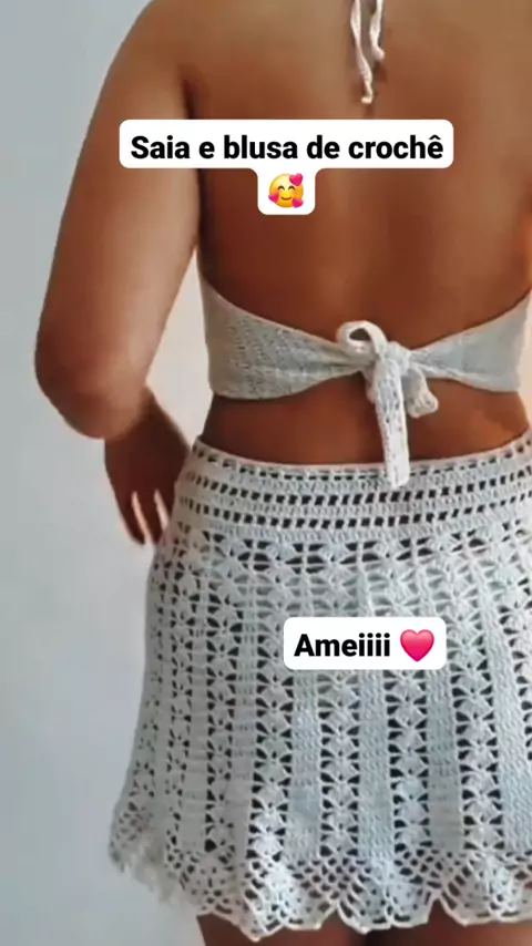 Saia e blusa de crochê #tendencia #viral #EstrelaDeFamília