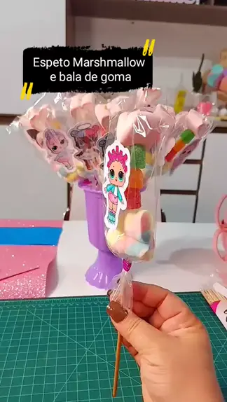 Vai um espetinho de marshmallow e balinha de goma 🌈 #festa #Receita #fy #dica #credoquedelicia More