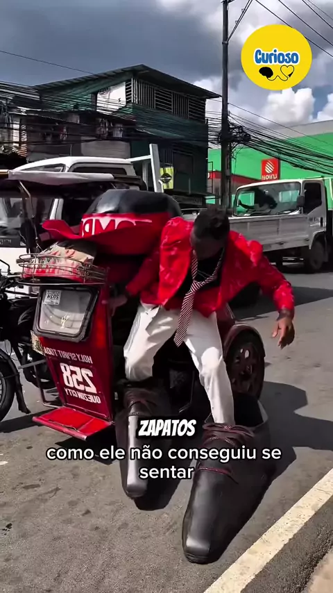 esse cara estava esperando um carro usando um chapéu e sapatos