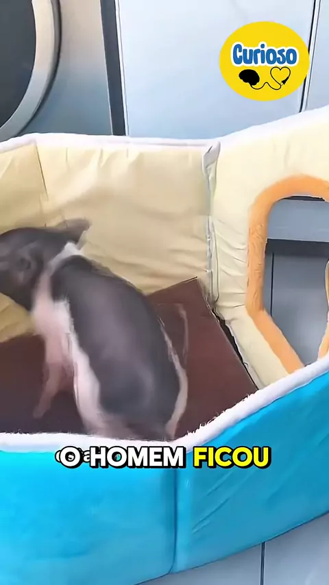 Um homem comprou um leitão como animal de estimação