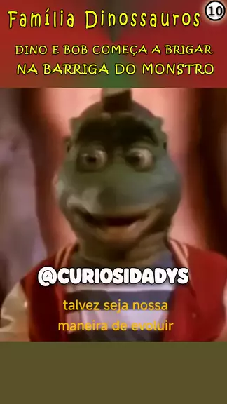 Dino e Bob começam a brigar na barriga do mostro 10 -Dino e Bobby foram engolidos por um monstro! Lá dentro, Dino contou que sofria pressão do pai para seguir as tradições jurássicas, mas queria algo melhor pro Bobby. A conversa irritou o monstro e ele vomitou os dois pra fora. Cheios de gosma, foram direto pro banho. 👉 Acompanha mais histórias assim na página! #FamiliaDinossauro #DinoeBobby #HumorJurássico #Anos90 #ConteúdoNostálgico