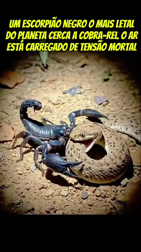 *O DUELO MORTAL!! Um escorpião negro o mais letal do planeta cerca a cobra-rei. O ar está carregado de tensão mortal.
