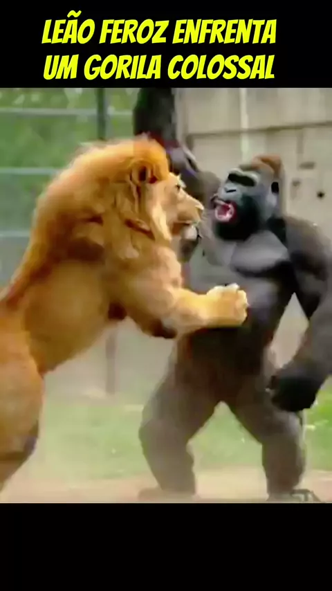 A BATALHA DOS GIGANTES! No coração da selva, um duelo lendário está prestes a acontecer. Um leão feroz, com olhos ardentes de vingança, enfrenta um gorila colossal, com força e fúria inigualáveis.