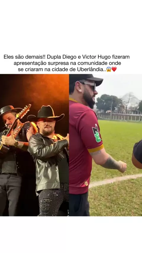 Eles são diferenciados!! 🙏🏻❤️ @diegoevictorhugo No último Domingo a dupla Diego & Victor Hugo fizeram um apresentação supresa na comunidade onde se criaram em Uberlândia. Durante partida da liga de futebol amador da cidade, realizada no bairro Luizote, os artistas apareceram e receberam o carinho dos moradores e de quebra ainda cantaram e emocionaram a galera que viu essa linda história sendo escrita de perto! #diegoevictorhugo #sertanejo #sertanejouniversitario