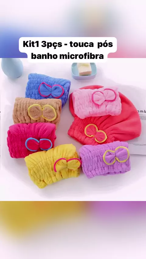 Kit1 3pcs - touca p贸s banho microfibra