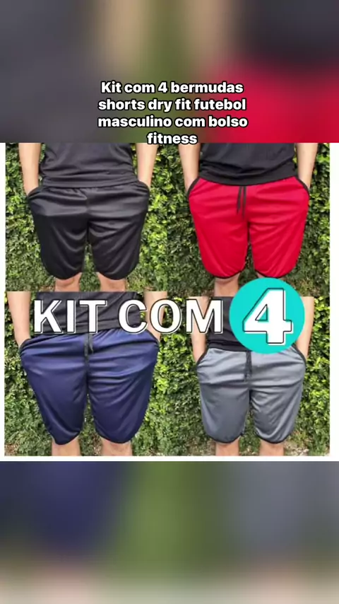 Kit com 4 bermudas shorts dry fit futebol