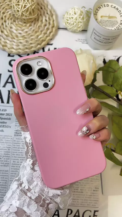 Capa de silicone para celular com moldura dourada e botões dourados