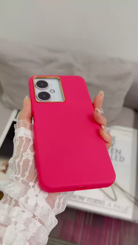 Capa de silicone para celular com moldura dourada e botões dourados