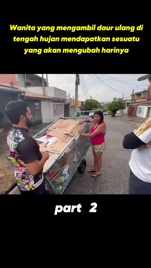 Senhora pegando reciclagem na chuva ganha algo que irá mudar seu dia
