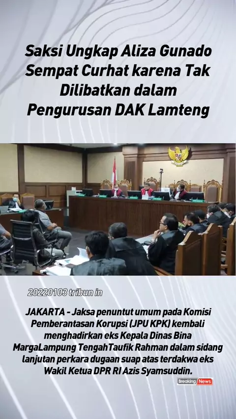 Saksi Ungkap Aliza Gunado Sempat Curhat karena Tak Dilibatkan dalam Pengurusan DAK Lamteng