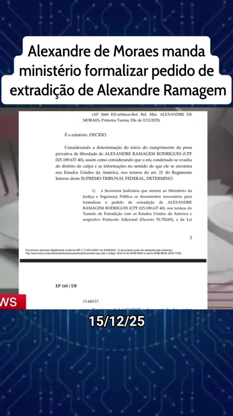 Alexandre de Moraes manda ministério formalizar pedido de extradição de Alexandre Ramagem #KWAINOTICIAS #noticias #News #viral #ultimasnoticias