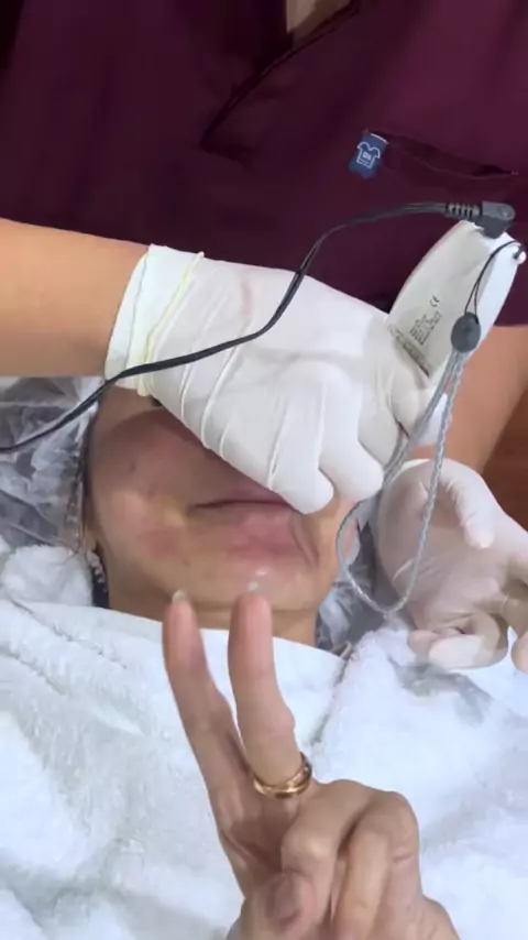 Kak momo pertama kali nyobain #dolphinskinbooster sedikit kaget ya say… tapi demi cantik dan awet muda ya kan #beautyispain #perawatanwajah #glowing #kencang #awetmuda di #dermaprosf #