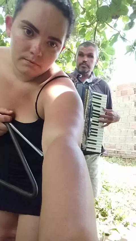 sanfoneiro tocando sanfona e sua filha tocando triângulo #sanfoneiro #triango #dançando.