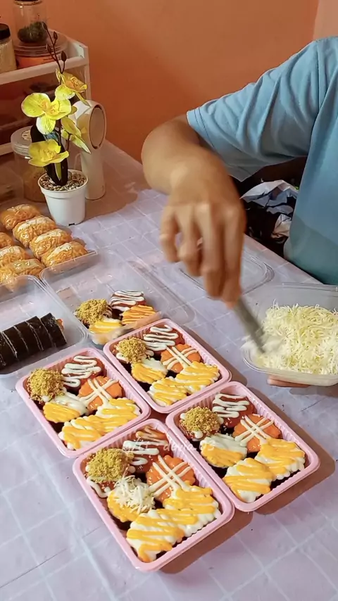 Bikin pesanan 8 box Sushi & Samyang Roll untuk Customer Online #sushi #kimbab #samyang #jajanantiktok #jajananviral