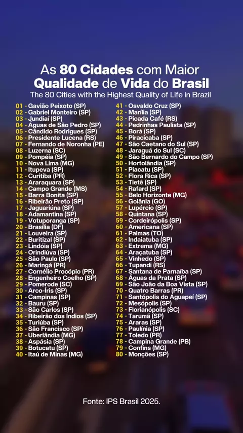 As 100 Cidades com Maior Qualidade de Vida do Brasi #cidades #qualidadedevida #brasil #dgcuriosities