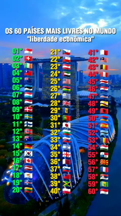 países mais livres do mundo, liberdade econômica. segundo o Monte Castelo e Índice de Liberdade Econômica da Heritage Foundation #dgcuriosities