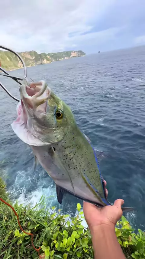 Padahal ikannya gk besar, karna tali pancingnya cuma 10lbs jadi pakai jangkar biar aman ketua😁 . .##rockfishing#softlure#gianttravely#castingfishing🎣