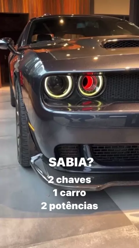 Dodge Challenger SRT Hellcat usa duas chaves para liberar até 717 cv. 🔊 A chave preta libera "só" 507 cv; a vermelha entrega os 717 cv a 6.000rpm. Motor V8 Hemi SRT Hellcat ( “gato do inferno”) de 6,2 litros, com compressor, produzindo 717 cv e 89,8 kgfm de torque a 4.000rpm, e mais o câmbio manual de seis marchas (Tremec, como no Viper) ou automático de oito marchas (HP-90 TorqueFlite, com possibilidade de trocas sequenciais por borboletas no volante).Vel. max. 300 km/h Zero a 100 km/h em 4seg