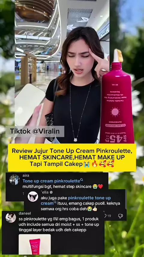Review Jujur ToneUp Cream Pinkroulette ,Hemat Skincare Hemat Make Up#pinkroulette#sunscreen#toneup#viral