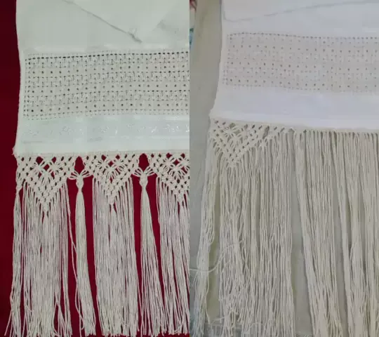 trabalho finalizado toalha de lavabo com bordado crivo e barrado em macramé #Macrame #macramebrasil #bordadocrivo #bordadocriativo