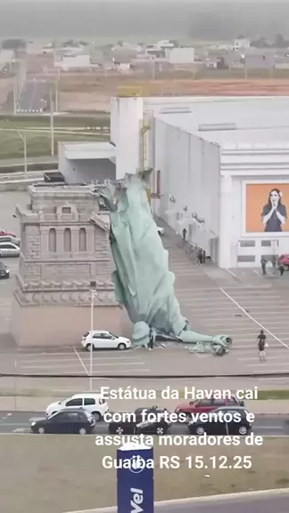 Estátua da Havan cai com fortes ventos e assusta moradores de Guaiba RS 15.12.25