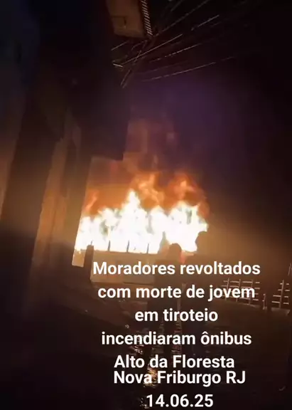 MORADORES DO ALTO DO FLORESTA REVOLTADOS COM MORTE DE JOVEM EM TIROTEIO TACAM FOGO EM ÔNIBUS DA FAOL. Nova Friburgo RJ 14.06.25 #KwaiFamilia