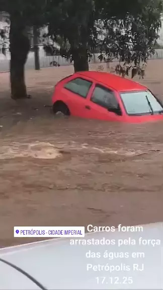 Carros foram arrastados pela força das águas em Petrópolis RJ 17.12.25