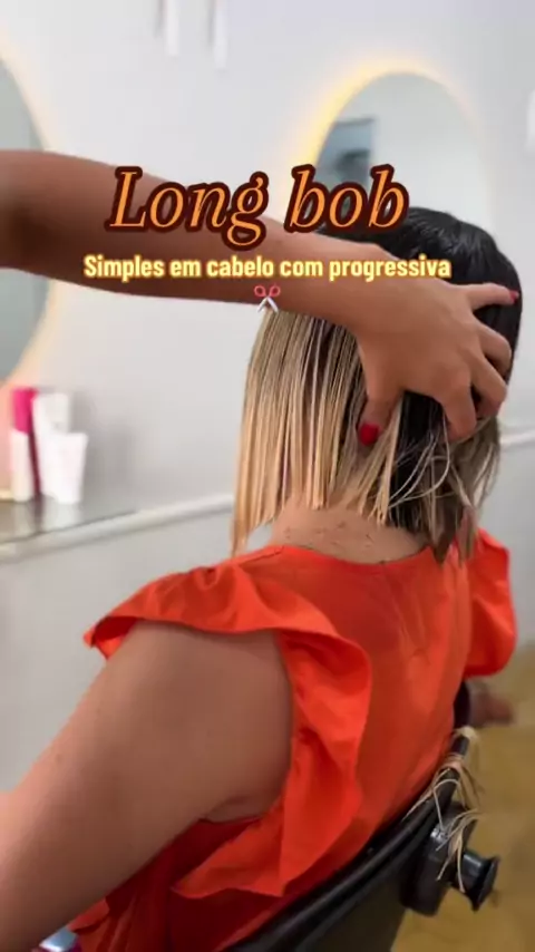 corte long Bob com progressiva no cabelo