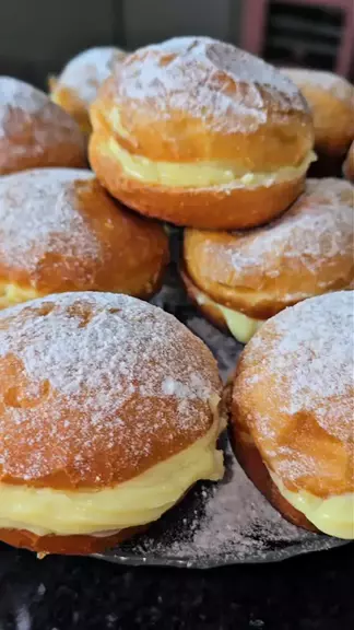 đŠ SONHO DE PADARIA COM CREME BELGA AVELUDADO ⨠Aquele sonho clĂĄssico que derrete na boca e tem gosto de infância ⨠Nada de sonho seco ou sem recheio! Esse aqui ĂŠ fofinho, dourado e com um creme belga tĂŁo aveludado que parece de confeitaria profissional đ¤ ⸝ đĽ MASSA DOS SONHOS (super fofinha) ⢠250 ml de leite morno (250 g) ⢠1 colher de sopa de fermento biolĂłgico seco (10 g) ⢠4 colheres de sopa de açúcar (50 g) ⢠1 colherzinha de cafĂŠ de sal (2 g) ⢠2 colheres de sopa de manteiga (28