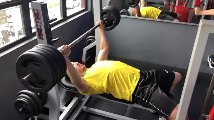 115 kg no supino (100kg anilhas + 15kg barra)#ObrigadoPelé #powerlifting #supino #mundofitness